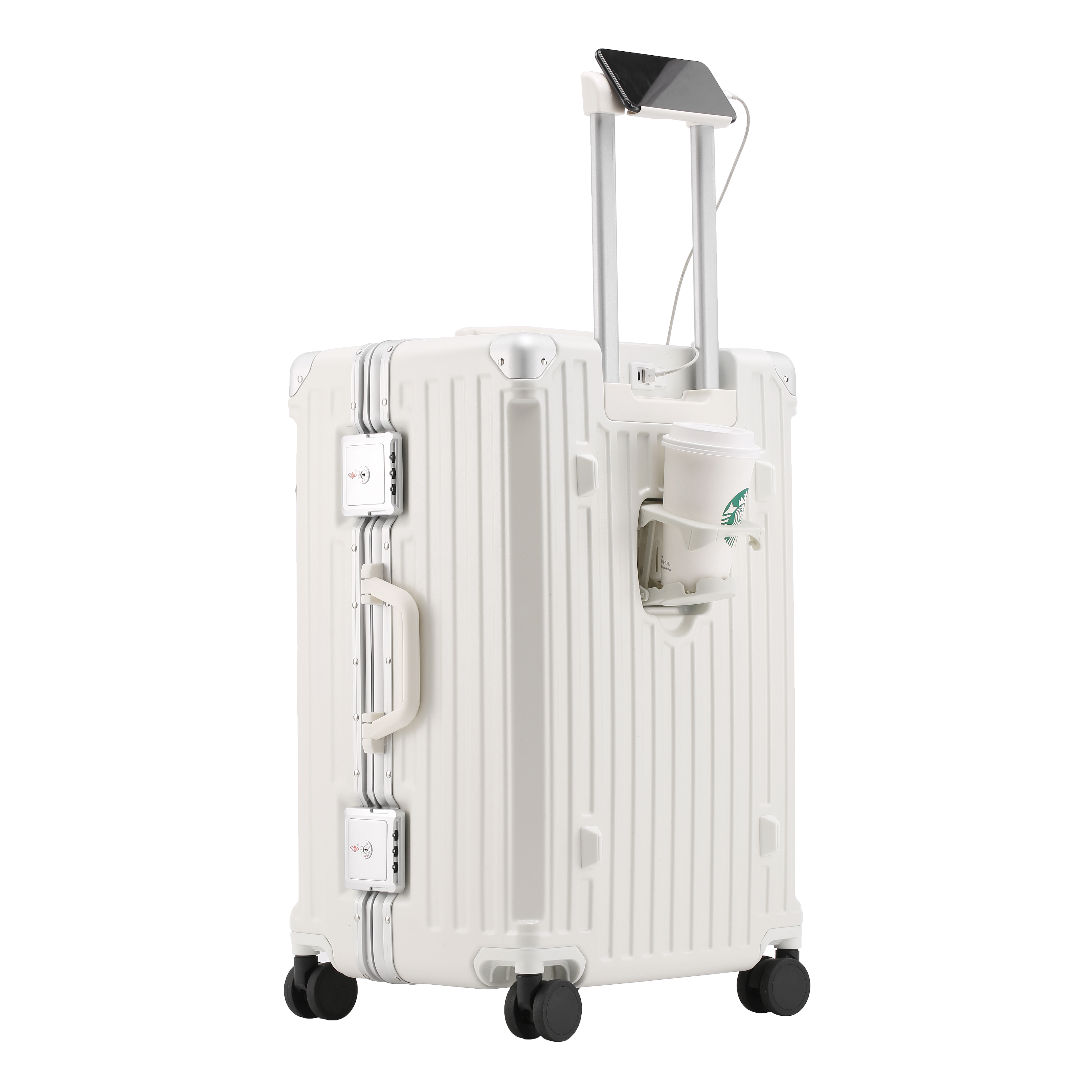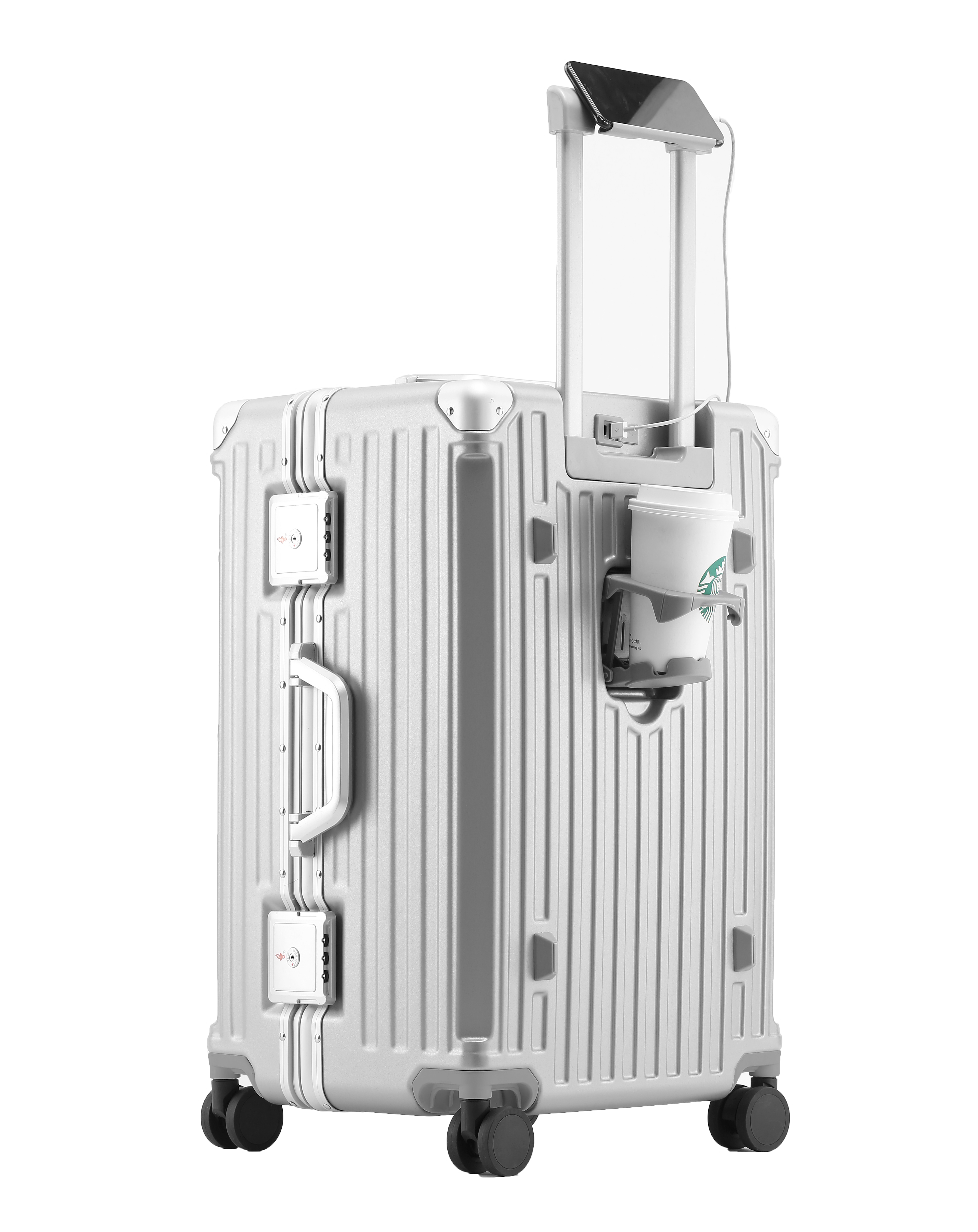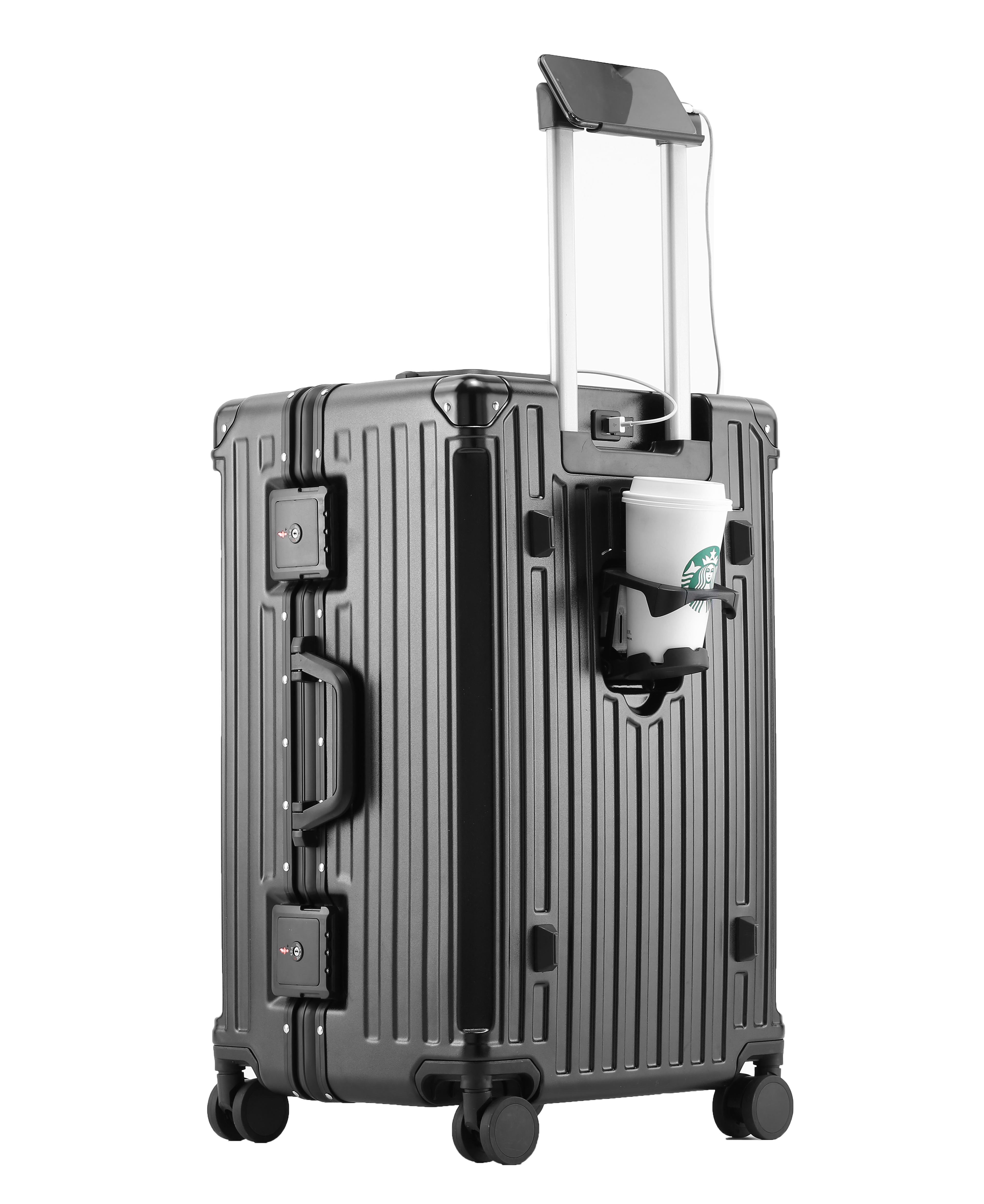 Aluminum-Frame Luggage Set with Built-In Cup Holder