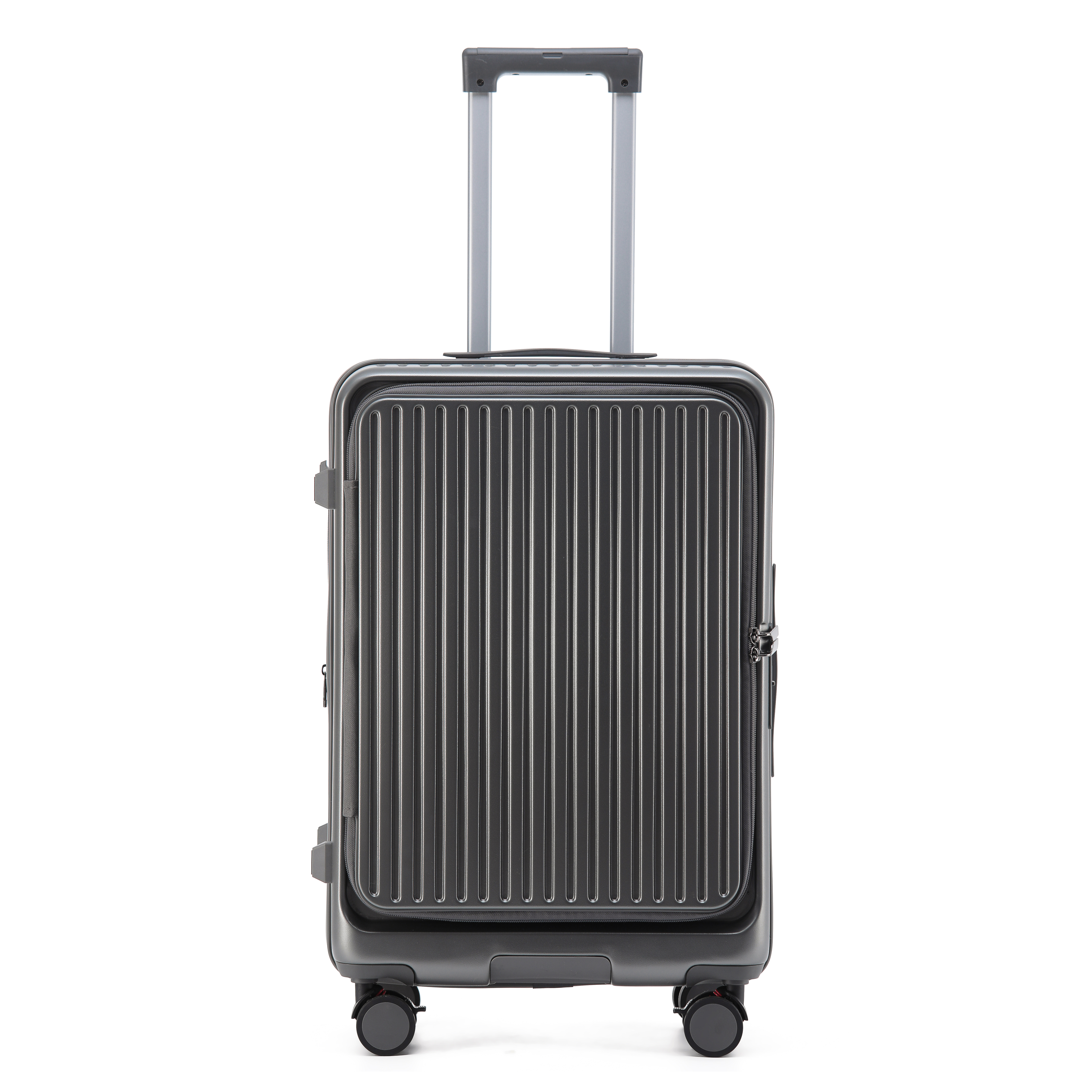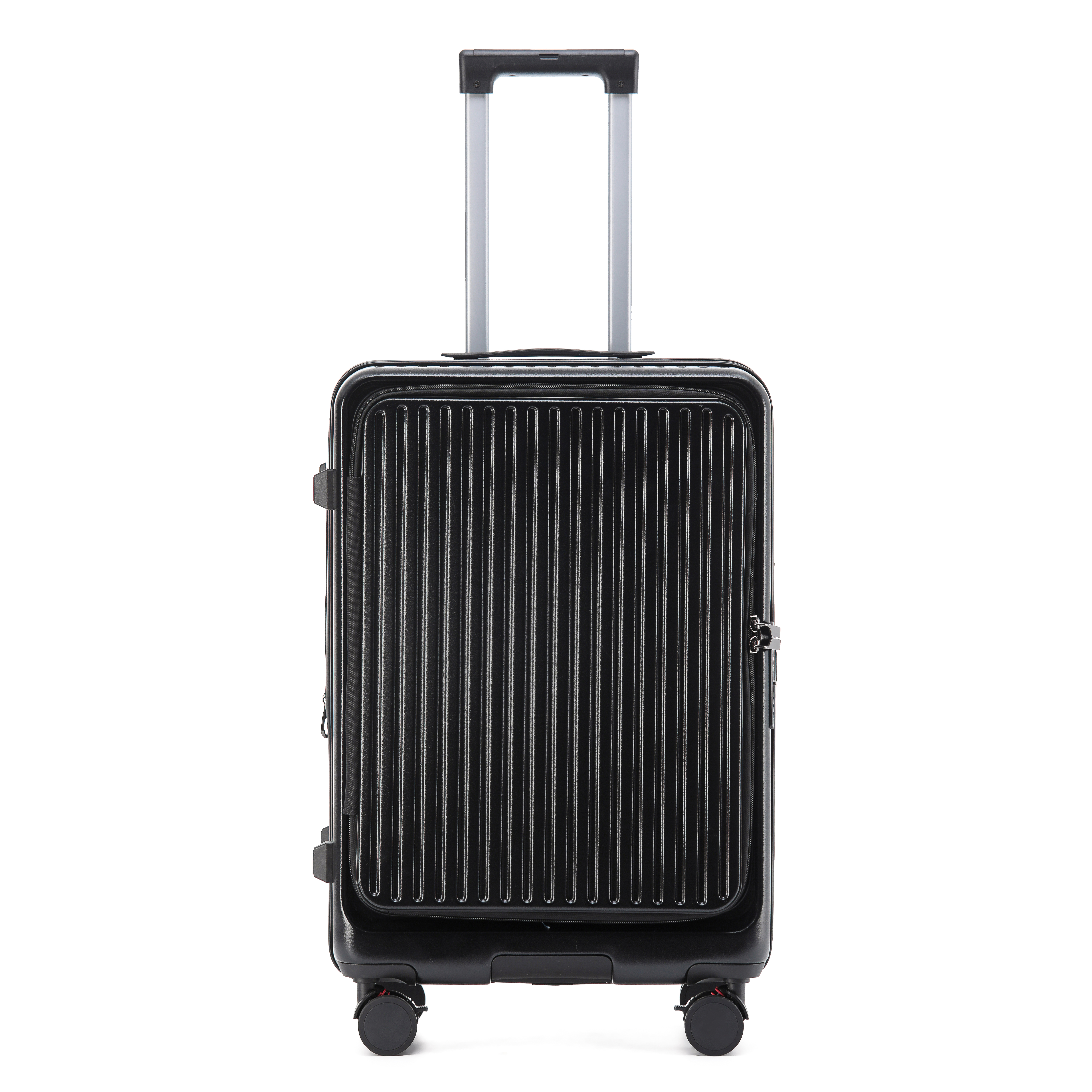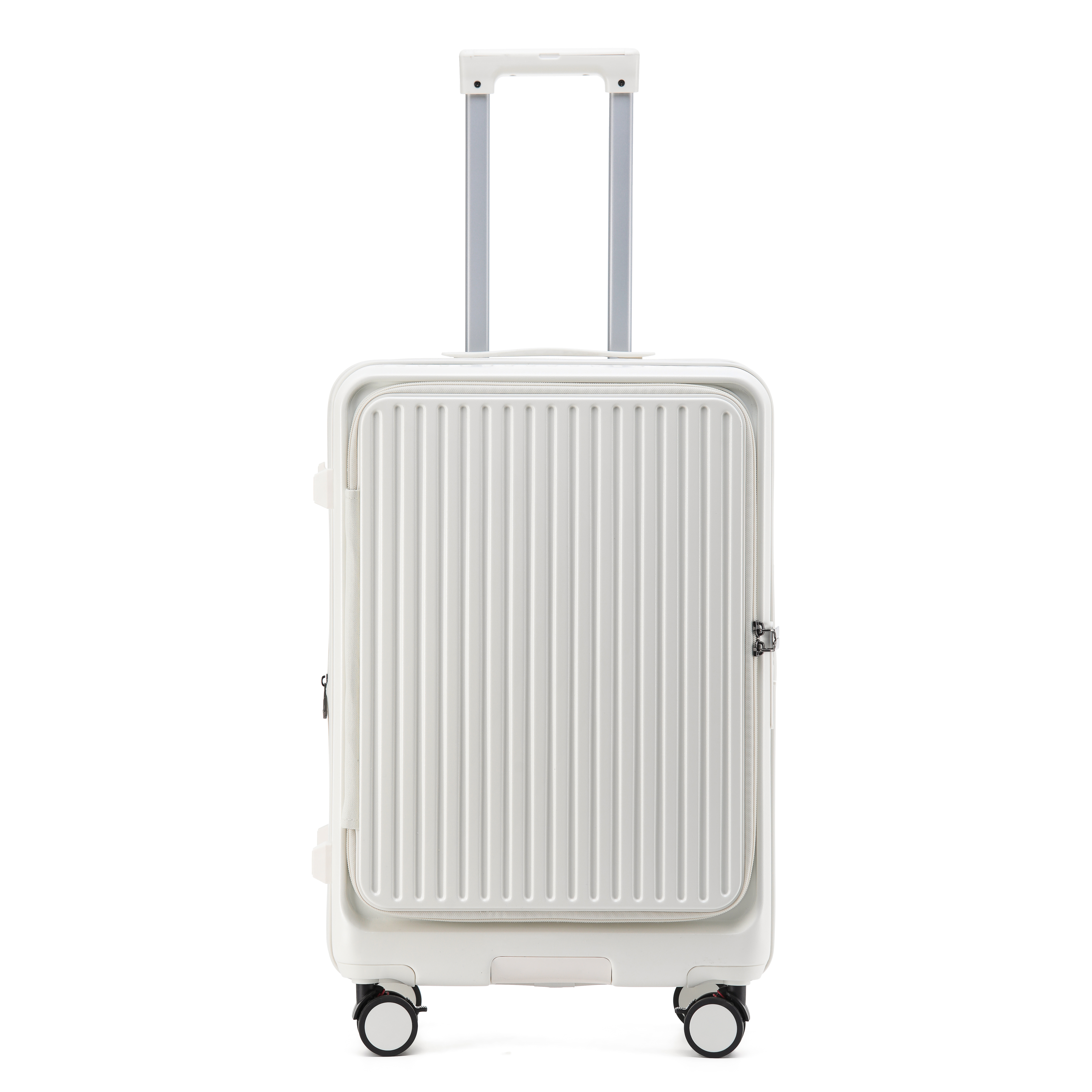The telescopic handle is made of high-strength aluminum and features multiple height adjustments, allowing you to find the perfect position for comfortable handling. The handle locks securely in place, preventing it from slipping during use. The soft-grip handle cover reduces strain on your hands, making it easy to pull the suitcase for long distances. When not in use, the handle retracts fully into the suitcase, saving space.